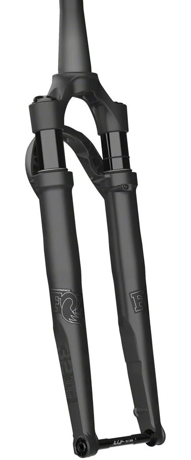 Black anodized 7000 series aluminum stanchions and 12x100mm bolt-on thru axle